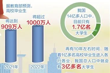 但也要看到,高等教育进入普及化时代,大学生数量大幅增长,就业形势就会发生变化。根据教育部预测,2021年高校毕业生将首次突破900万人,达到909万人,再下一届毕业生将超过1000万人。